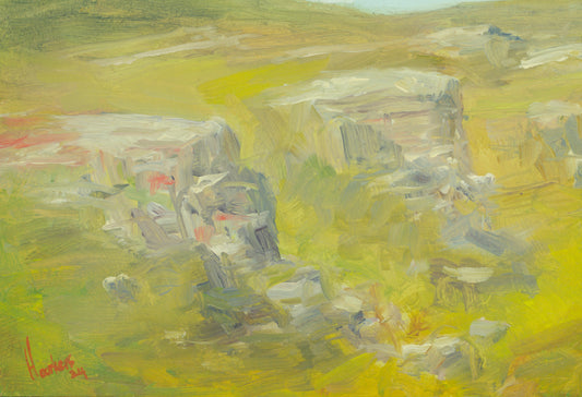 Rocky outcrop Widdop, Yorkshire. Original plein air oil painting landscape one of a kind handmade impressionistic 10 x 8 " artwork
